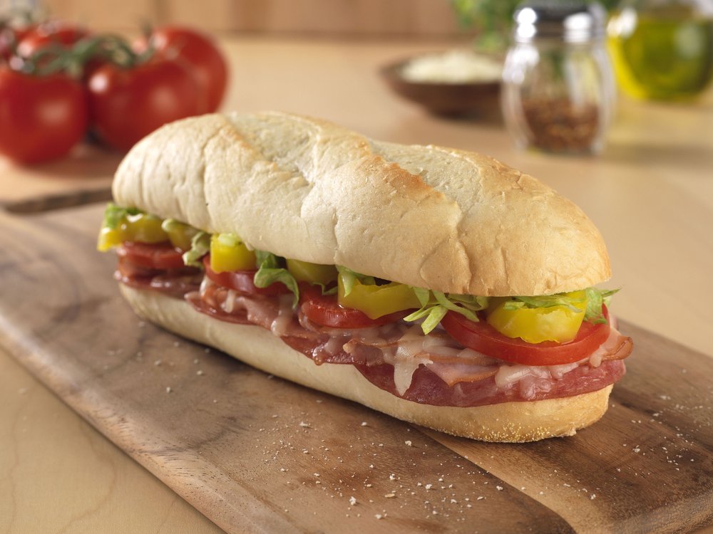 Oven baked with shaved ham, smoked Provolone, lettuce, freshly cut Roma tomatoes and yellow onions, house Italian dressing.